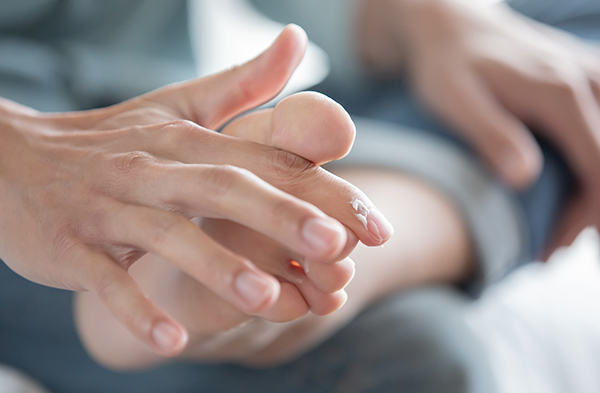 보행에 의한 기계적 자극으로 피부에 손상이 생긴 경우에 손발톱무좀이 발생하기 쉽습니다.